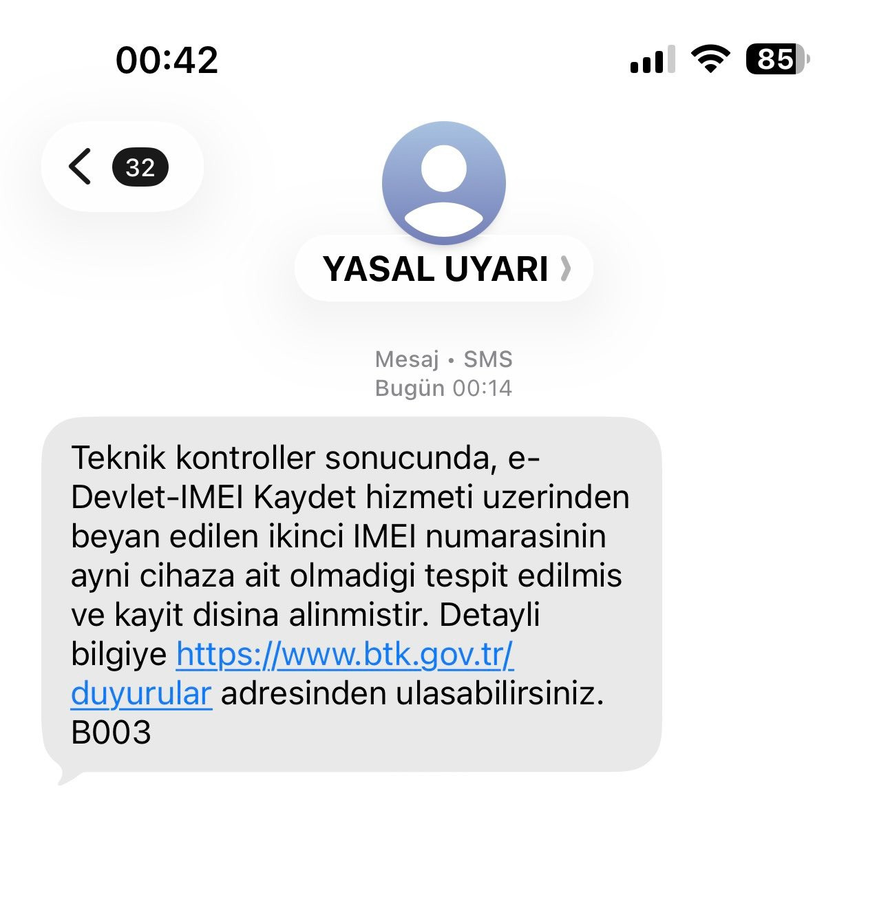 ve kayit disina alinmistir. Detayli bilgiye https://www.btk.gov.tr/ duyurular adresinden ulasabilirsiniz.” uyarısıyla karşılaşıyor.
