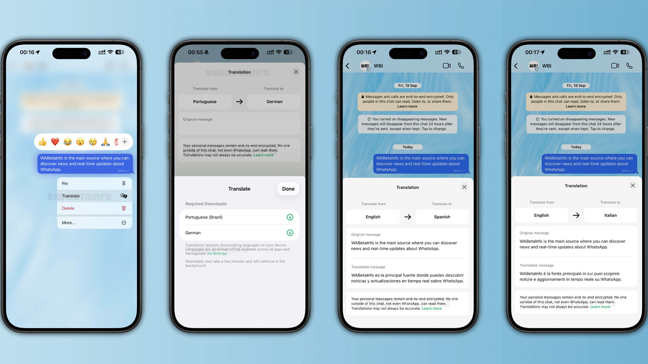 Bu arda WhatsApp bu işlevinde Meta'nın kendi çeviri motorunun aksine, Apple'ın API'sini kullanıyor. Hız perspektifli yeni çeviri, anlık orijinal mesajınızda yeni bir bölüm görüntüleniyor ve diyaloğun dağılımlarını takip etmeyi kolaylaştırıyor.