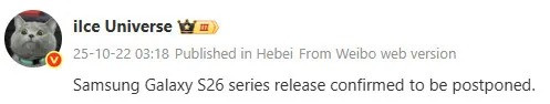 Yapılan paylaşıma göre Galaxy S26 serisinin lansman tarihi ertelendi.