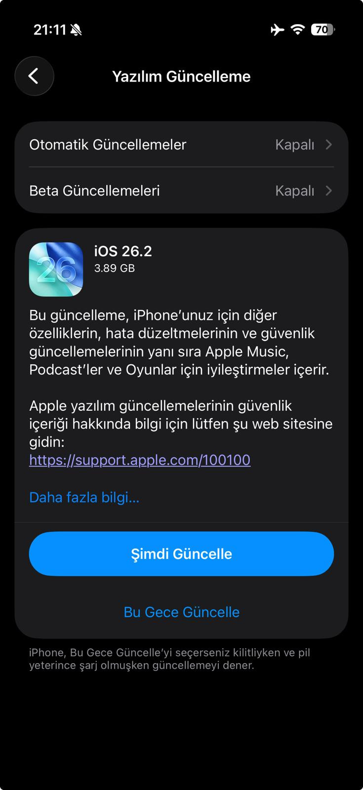 TechTurco 12 Aralık 2025- Apple, büyük bir merakla beklenen iOS 26.2 güncellemesini resmen kullanıma sundu. iPhone 11 ve üzeri modelleri kapsayan bu ikinci büyük güncelleme, sadece yeni özellikler getirmekle kalmıyor; kilit ekranı, güvenlik ve AirDrop güvenliği gibi kritik alanlarda önemli iyileştirmeler içeriyor. Gelin detaylara yakından göz atalım.